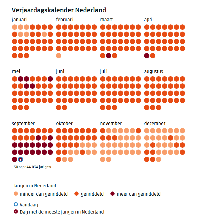 De cijfers van het CBS laten mooi zien hoe voorspelbaar onze geboortepatronen eigenlijk zijn. Dat juist 30 september zo vaak wordt genoemd als meest voorkomende verjaardag zegt veel over het ritme van ons leven: drukke feestdagen, rustige wintermaanden en geplande ingrepen in ziekenhuizen spelen allemaal mee.